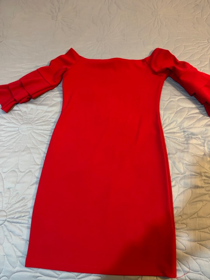 Kırmızı, uzun kollu ve drapeli detaylara sahip, tek renk midi elbise. Teknolojik duruşu ve parlak kumaşıyla romantik akşamlar için ideal ❤️