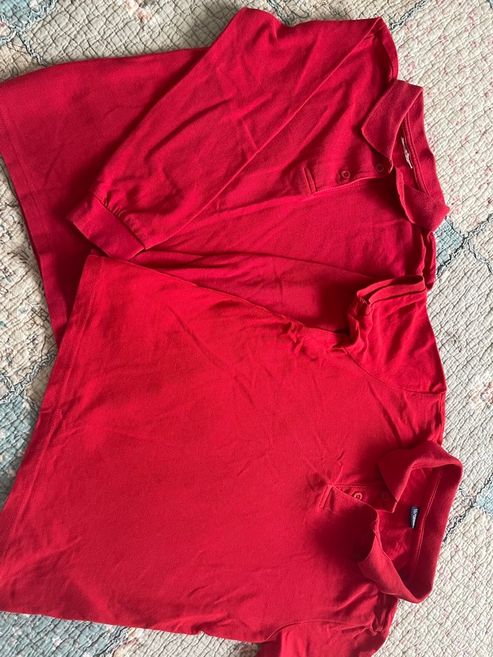 Kırmızı, uzun kollu, yakalı ve düz desenli çocuk polo tişörtü, yumuşak tekstil kumaştan, sade ve şık bir sokak stili için. ✨ leke, yırtık, sökük vs yok, uzun kollu olanın etiketi kesik ve renginde solukluk mevcut. #lcw #lacoste #polo