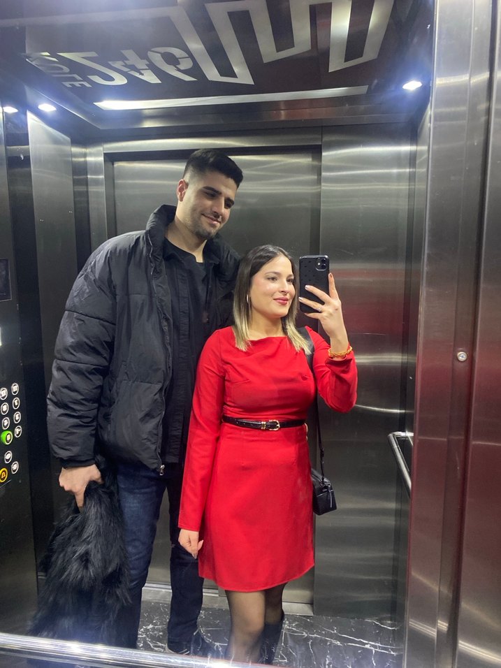 Kırmızı, uzun kollu, balon detaylı ve baskılı tasarıma sahip, dar kesim midi elbise, romantik akşamlar için şık ve trend sokak stili sunar. ❤️
