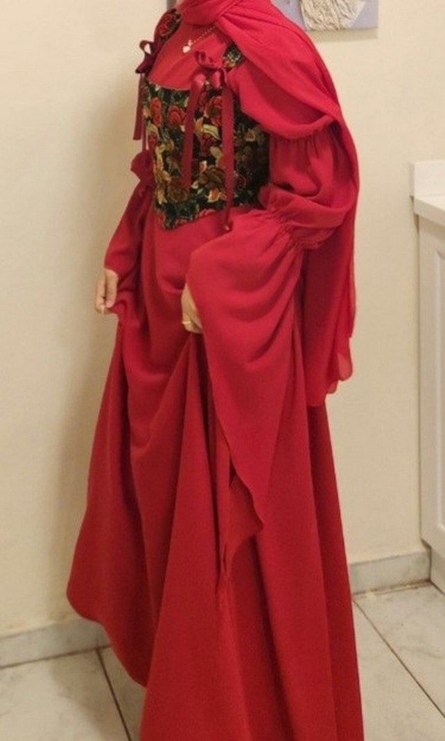 Bu kadın elbisesi, bol kesim, uzun kollu ve straplez yaka özelliklerine sahiptir. Bohem ve geleneksel tarzda, düğün için uygundur. Sadece 1 kere giyilmistir. Korse ve elbise iki parca satilmaktadir ayri olarak satmiyorum. Hicbir yerinde kusur hasar yoktur. Korse 38-40 beden icin uygundur. elbise m bedendir.