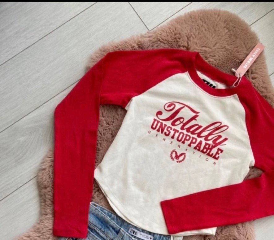 Pamuklu kumaştan, uzun kollu ve yuvarlak yaka, fitted kesim Üzerinde 'Totally Unstoppable' baskısı bulunan kırmızı ve beyaz renklerde rahat bir tasarım. Bi kaç kez giyildi sadece