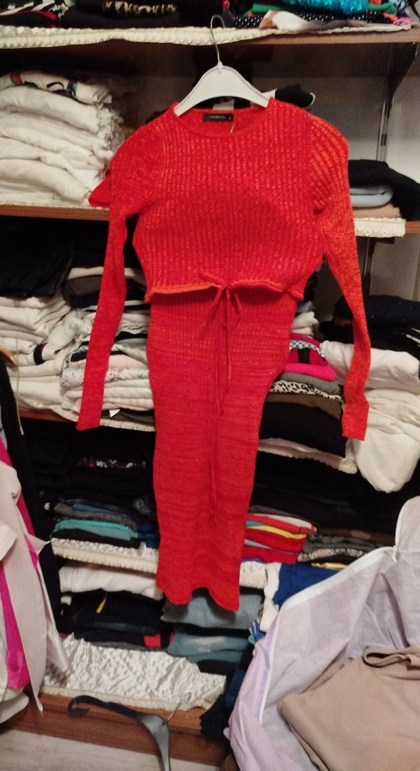 Kırmızı Uzun Kollu Triko Elbise