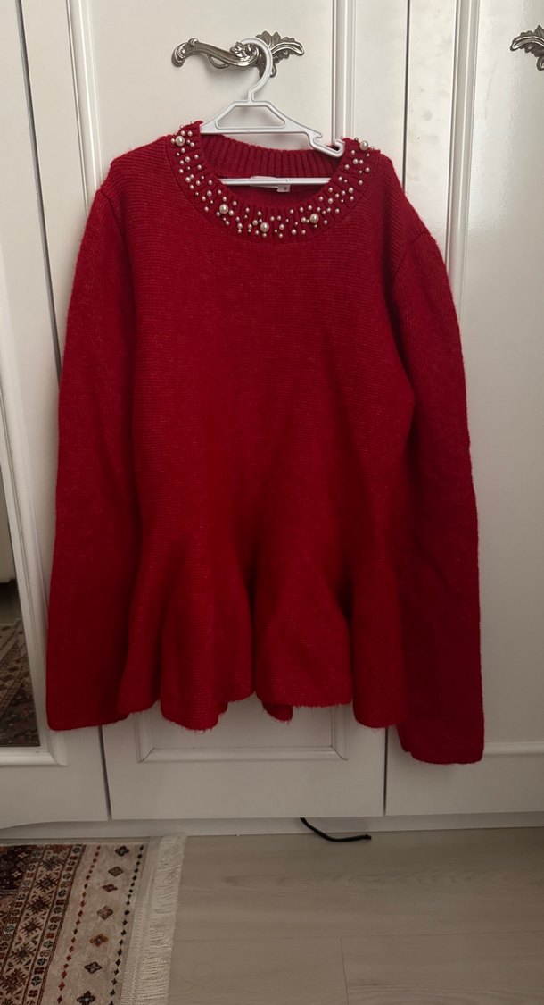 Kırmızı, Uzun Kollu, Triko Kadın Kazak