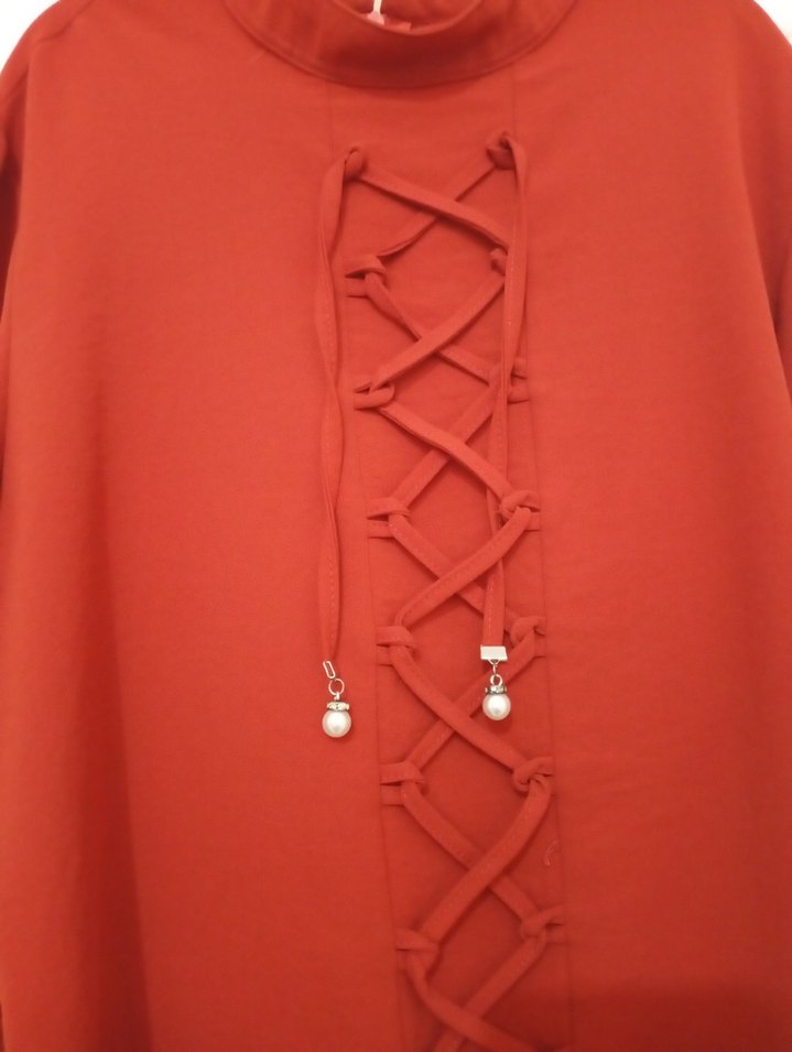 Kırmızı Uzun Kollu Zincir Detaylı Kadın Tunik