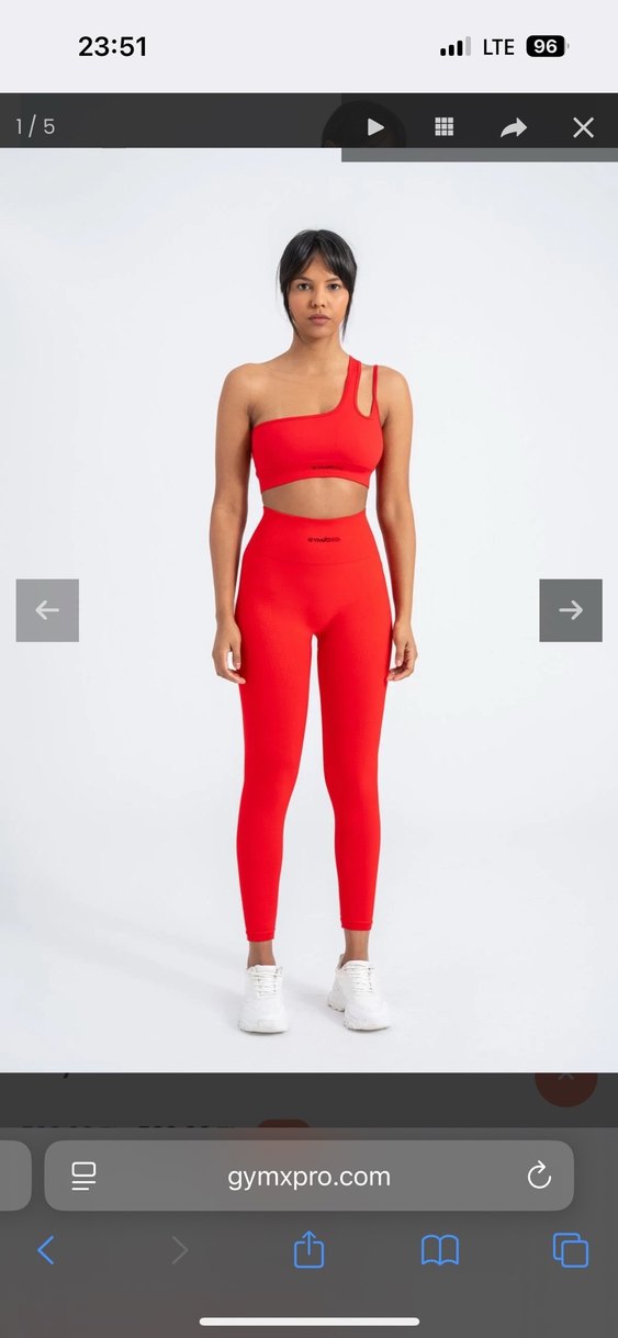 Kırmızı renkte, uzun boylu ve sentetik kumaştan yapılmış, sportif ve sokak stiline uygun, rahat ve şık kadın taytı.