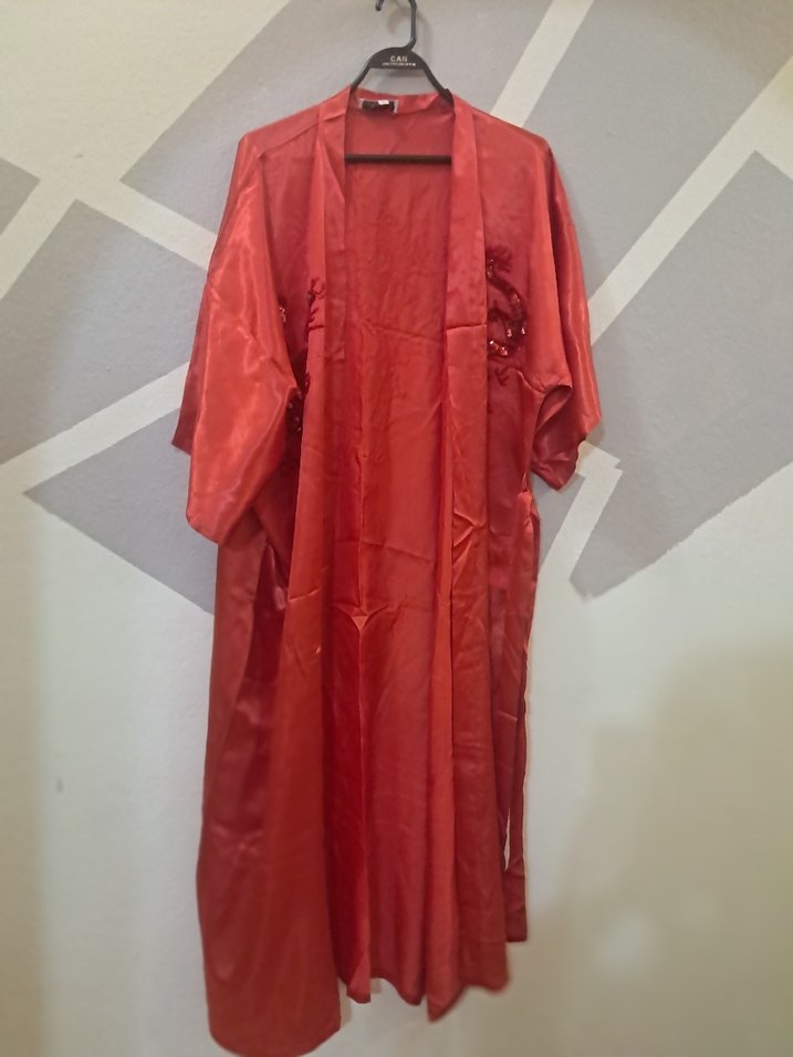 Kırmızı Uzun Salaş Kadın Sabahlık orjinal full el işi