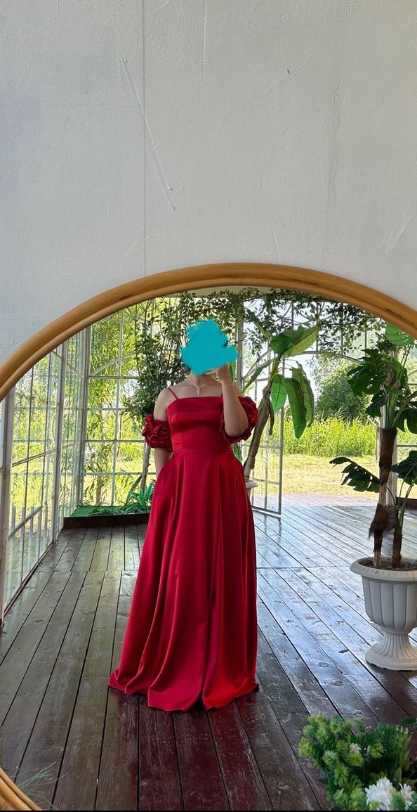 Kırmızı uzun saten abiye