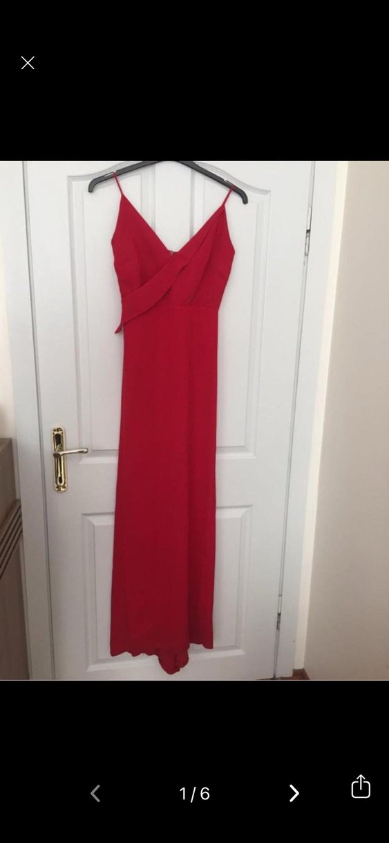 Drapeli, V yaka ve kolsuz uzun elbise, parlak kırmızı ve ipeksi kumaştan, klasik şıklık için ideal. ❤️