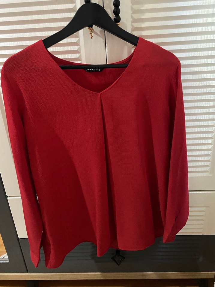 Koyu kırmızı renkte, V yakalı, uzun kollu lcw 44 beden