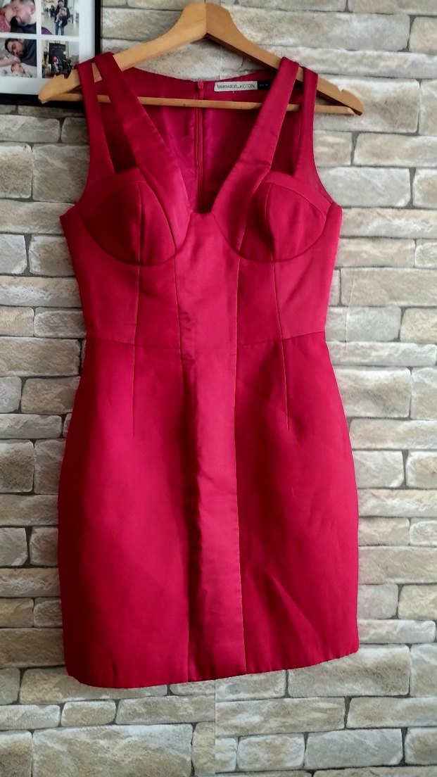 Kırmızı parlak kumaştan, V yakalı, kolsuz ve drapeli tasarıma sahip, midi uzunlukta, vücuda oturan abiye elbise. Romantik akşamlar için uygundur. ✨