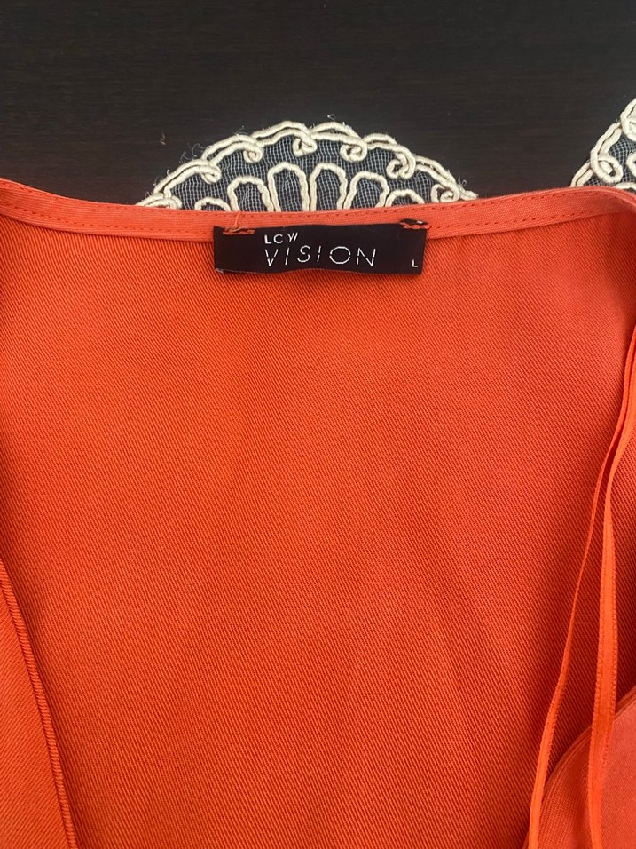 Kırmızı, v yaka ve düğmeli hamile bluzu. İpek gibi kumaştan, nakışlı ve bohem tarzda, günlük kullanım için uygun. Marka: VISION.