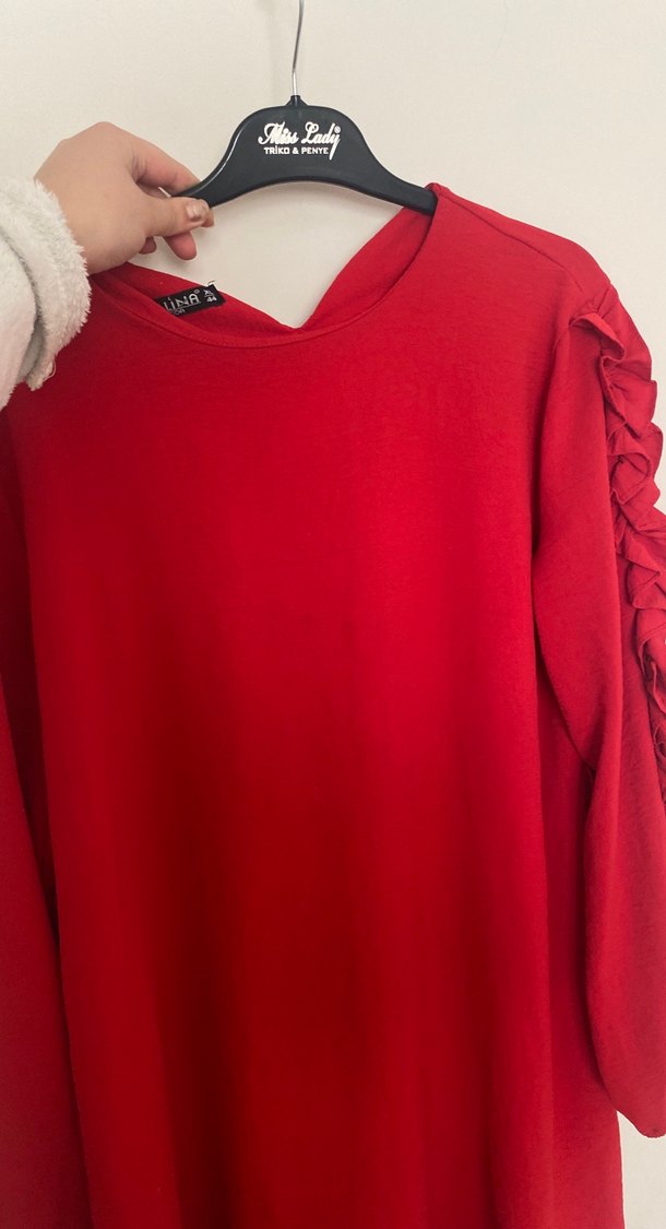 Kırmızı V Yaka Fırfırlı Kadın gömlek