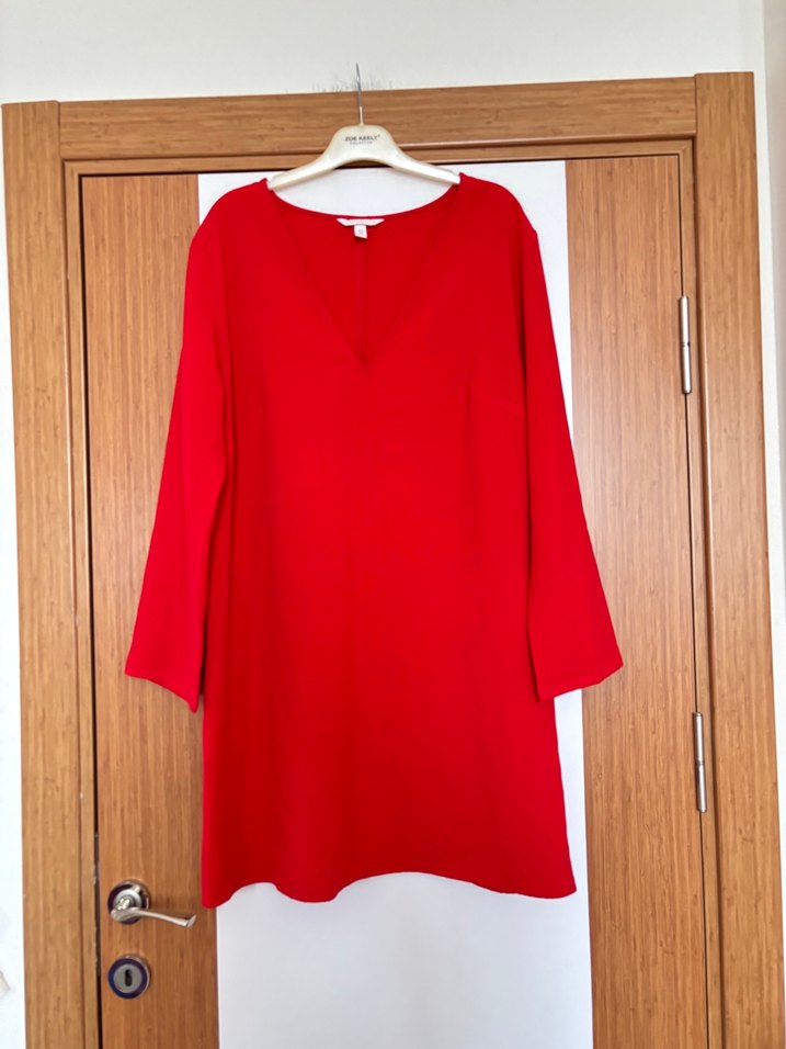 Kırmızı, V yaka kırışmaz kumaş HM Marka elbise
