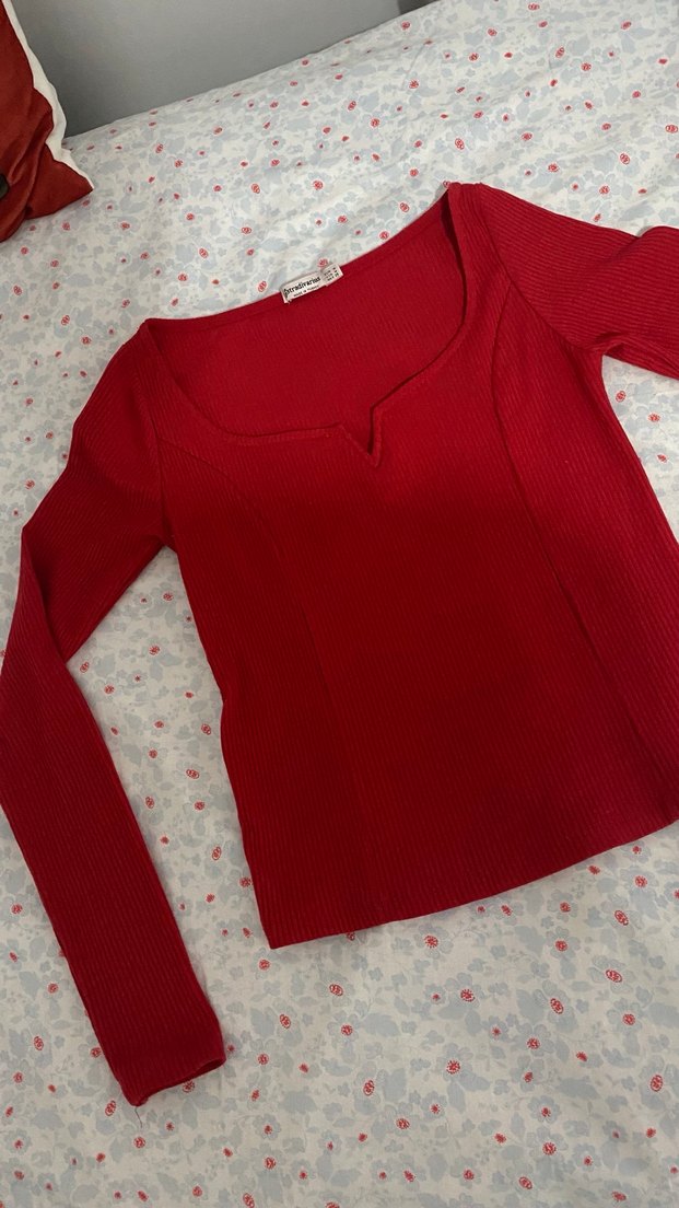 Kırmızı V Yaka Kadın bluz