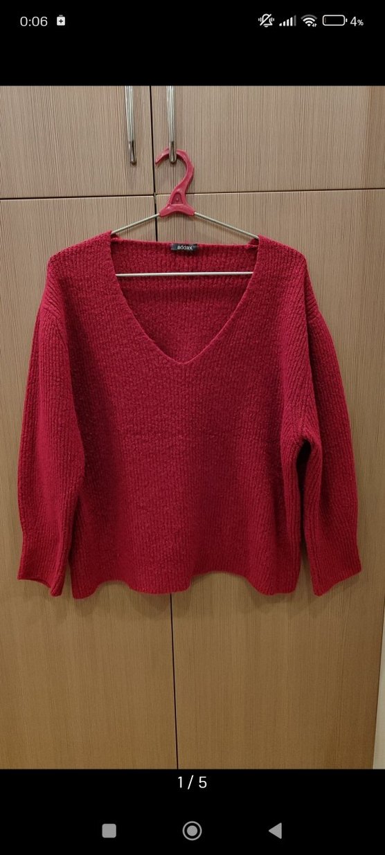 Kırmızı V Yaka Kadın Kazak