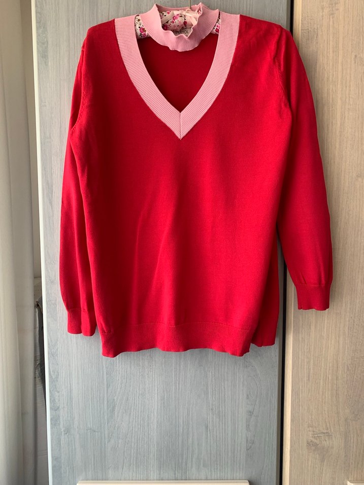 Kırmızı V Yaka Kadın Triko Kazak