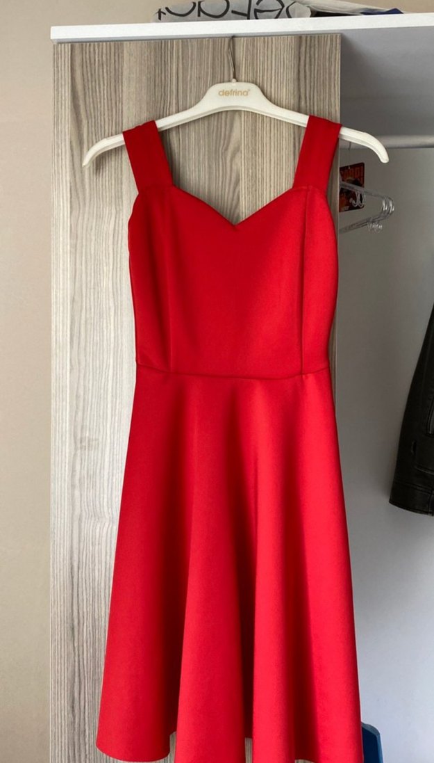 Kırmızı, V yakalı ve kolsuz bu midi elbise, drapeli detaylarıyla modern klasik bir tarza sahiptir. Romantik akşamlar için uygundur. ❤️