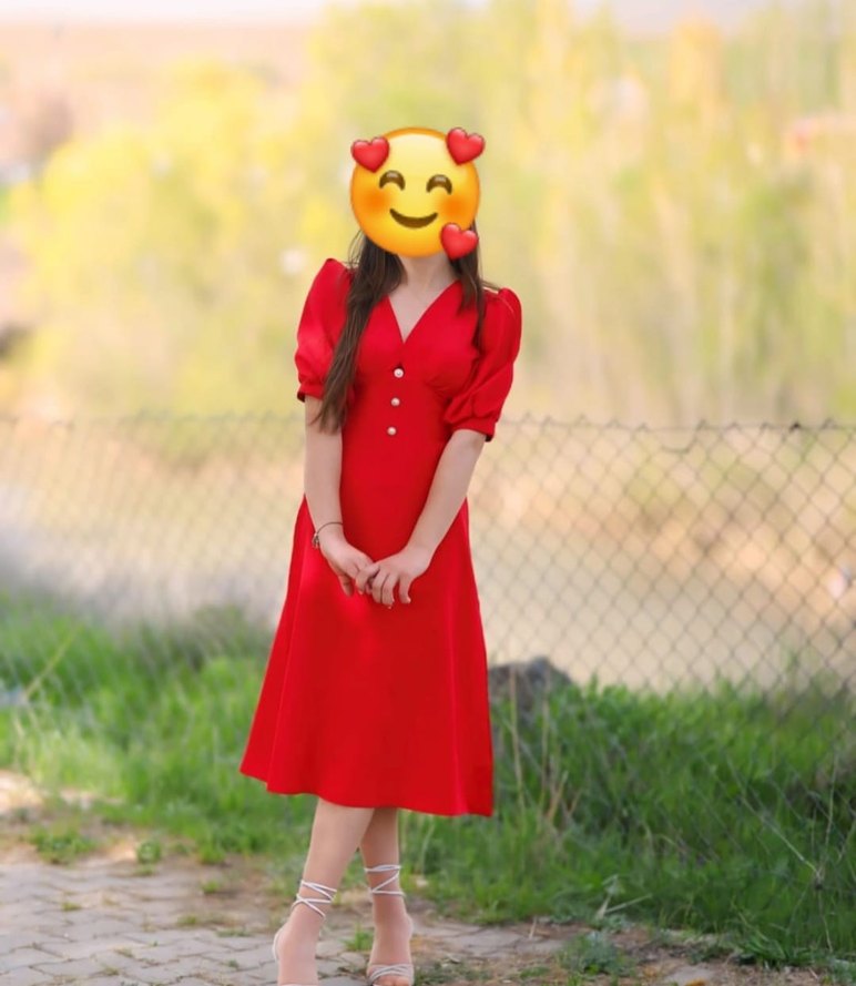 Kırmızı, v yaka ve düğmeli, kısa kollu, midi boy oturan elbise. Sentetik kumaştan yapılmıştır ve romantik akşamlar için uygundur. ❤️