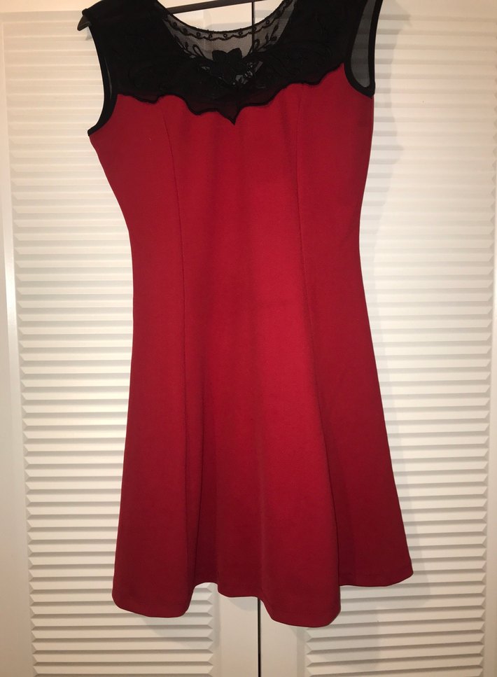 Koyu kırmızı, v yaka ve kolsuz, dantel üst detaylı, pilili ve dar kesim midi elbise, romantik akşamlar için uygundur.