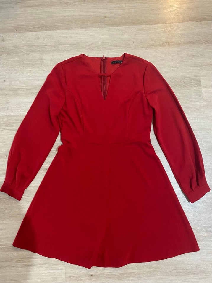 Kırmızı, V yaka ve uzun kollu, beli oturan midi elbise. Modern klasik tarzıyla romantik akşamlar için zahmetsiz şıklık sunar. ✨