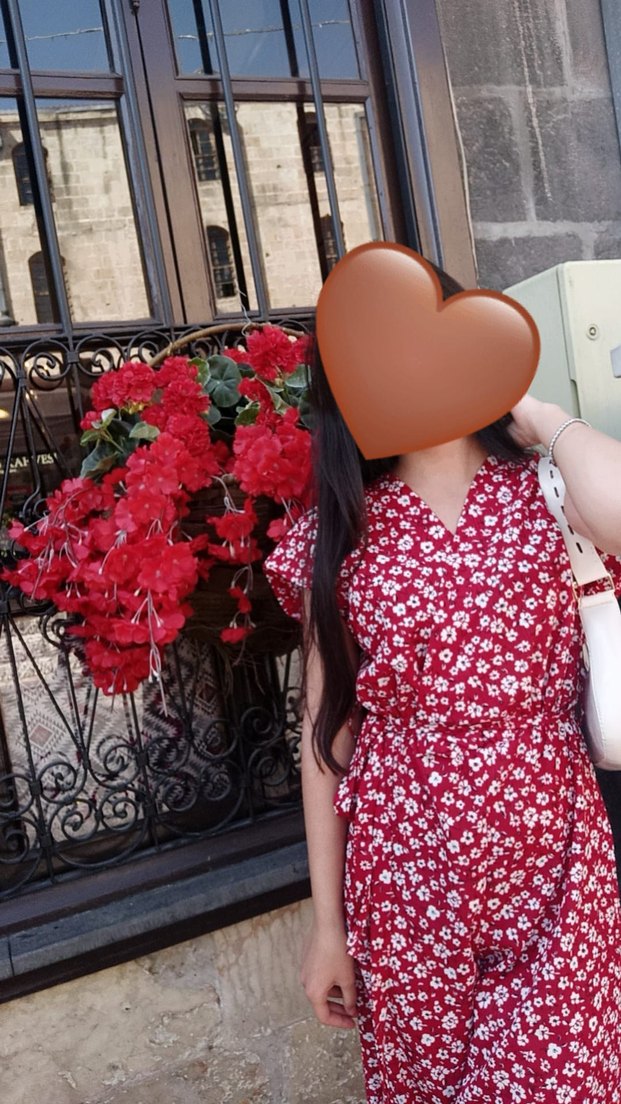 Kırmızı çiçek desenli, V yakalı ve kolsuz, belde tokalı, sentetik kumaştan yapılmış bohem tarzda midi boy tulum