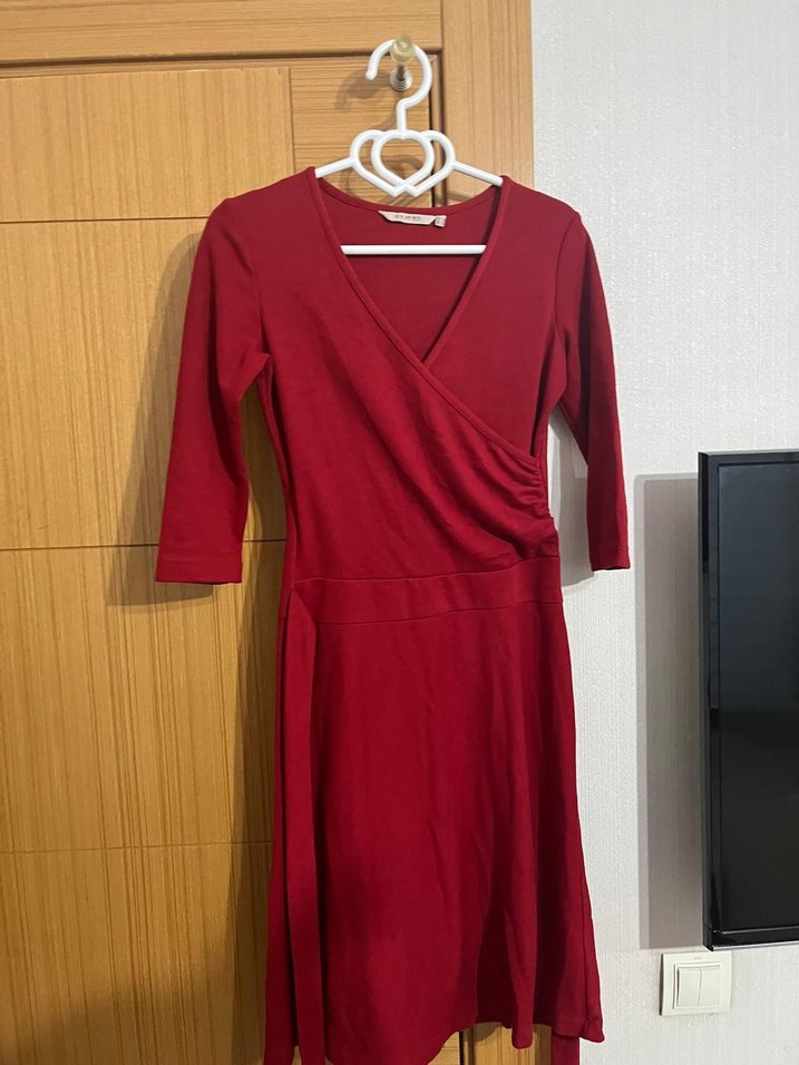 Kırmızı midi triko elbise