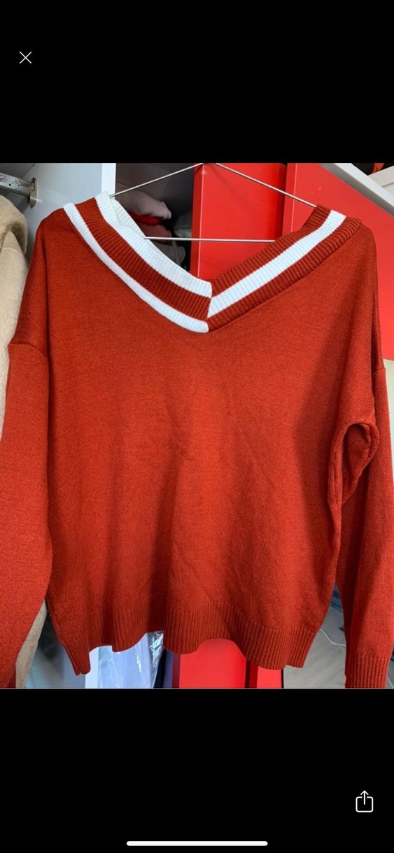 Kırmızı V Yaka Örgü Kadın Kazak