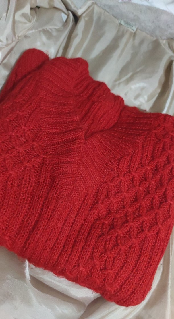 Parlak kırmızı renkli, V yakalı ve uzun kollu, vücuda oturan örgü kadın kazak, rahat ve bohem tarzda günlük kullanım için uygundur. S M BEEDEN UYUMLU