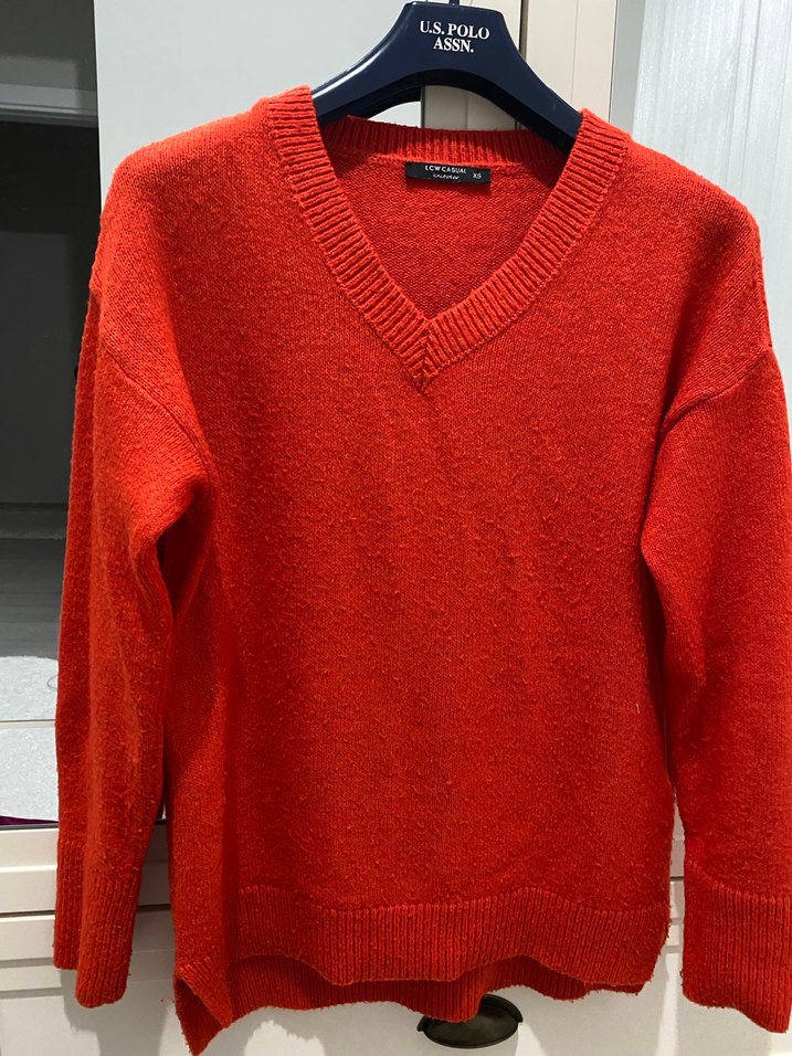 Kırmızı V Yaka Örgü Kadın Kazak