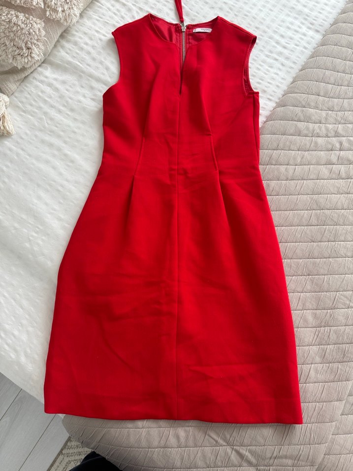 Kolsuz kırmızı kısa elbise, V yakalı ve piliseli detaylarıyla şık ve modern bir görünüm sunar. ❤️