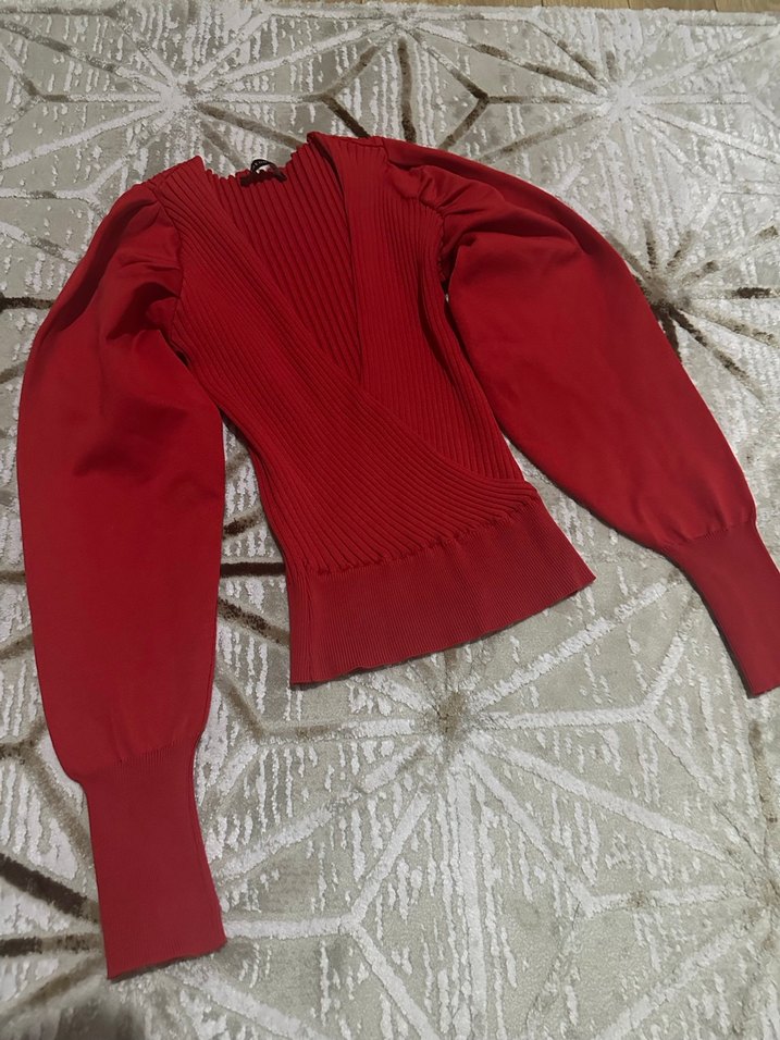 Kırmızı V Yaka Triko Kadın Kazak