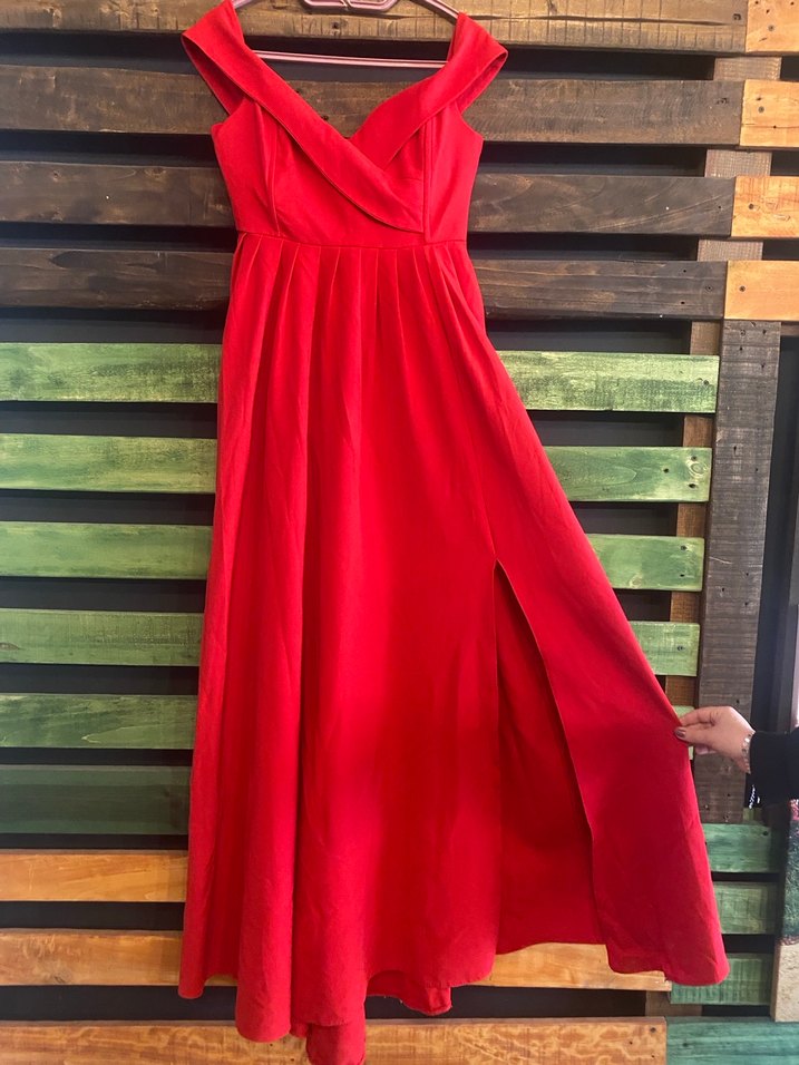 Sadece kendi nikahım da giydim bi kez giyildi Kırmızı uzun elbise, V yaka ve ince askılıdır. Drapeli tasarıma ve yırtmaç detaya sahiptir. Yumuşak sentetik kumaştan, bohem ve vintage tarzlara uygundur likralı bi elbise ❤️
