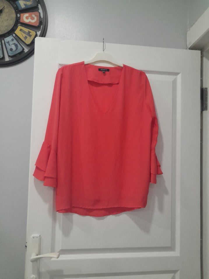 Kırmızı V Yaka Uzun Kollu Kadın Bluz