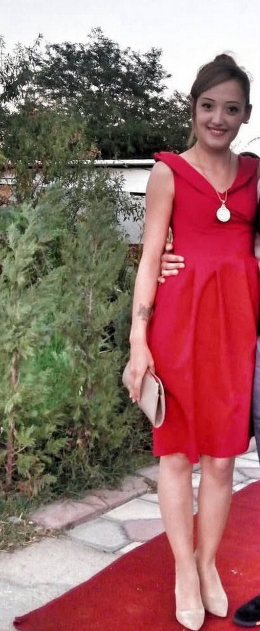 Parlak kırmızı renkte, v yakalı ve drapeli, normal boyda, kolsuz hamile elbisesi. Düğünler için uygun, Paris sokak modası tarzında.