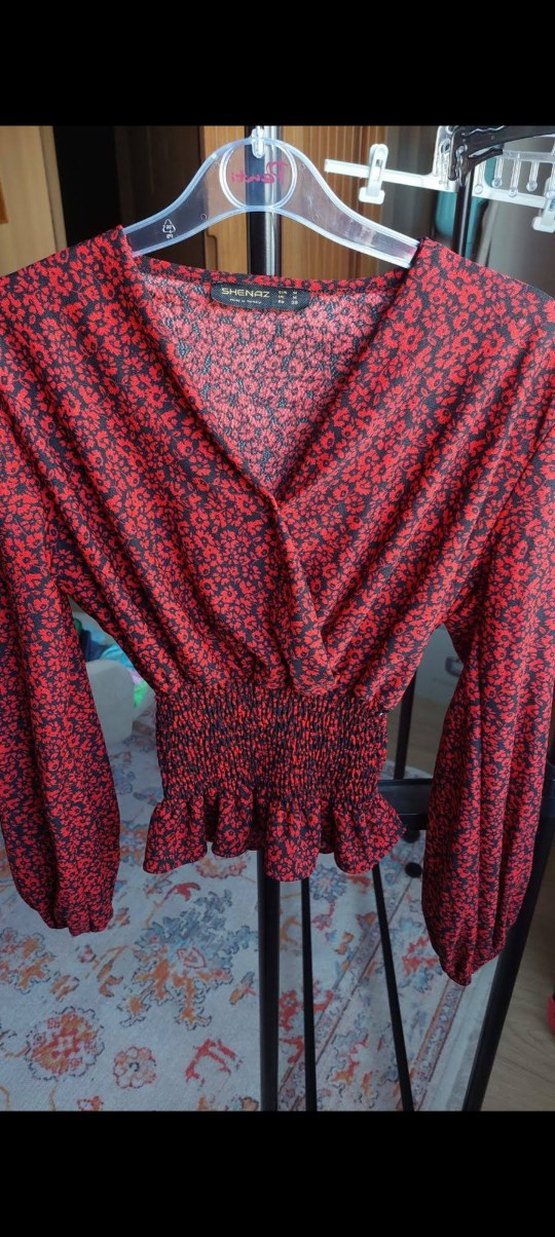 Kırmızı V Yakalı Drapeli Mini Bluz