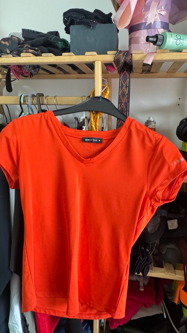 Kısa kollu, V yakalı, kırmızı parlak renkli, ipeksi kumaştan yapılmış, vücuda oturan kadın tişörtü. Spor ve sokak stili için uygundur. ♀️