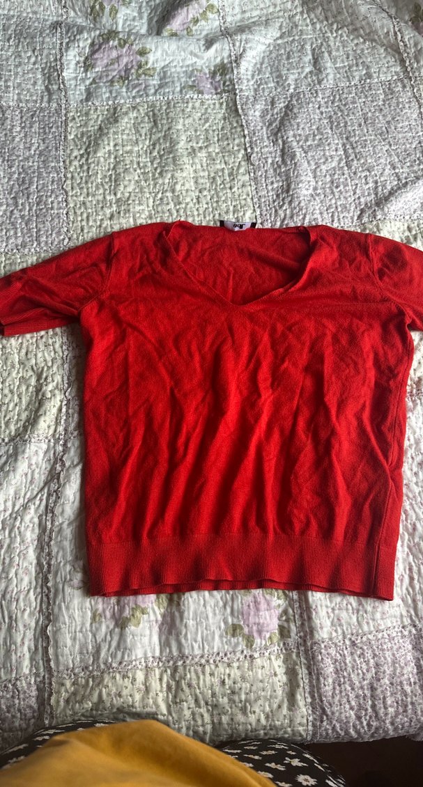 Kırmızı V Yakalı Kadın Triko