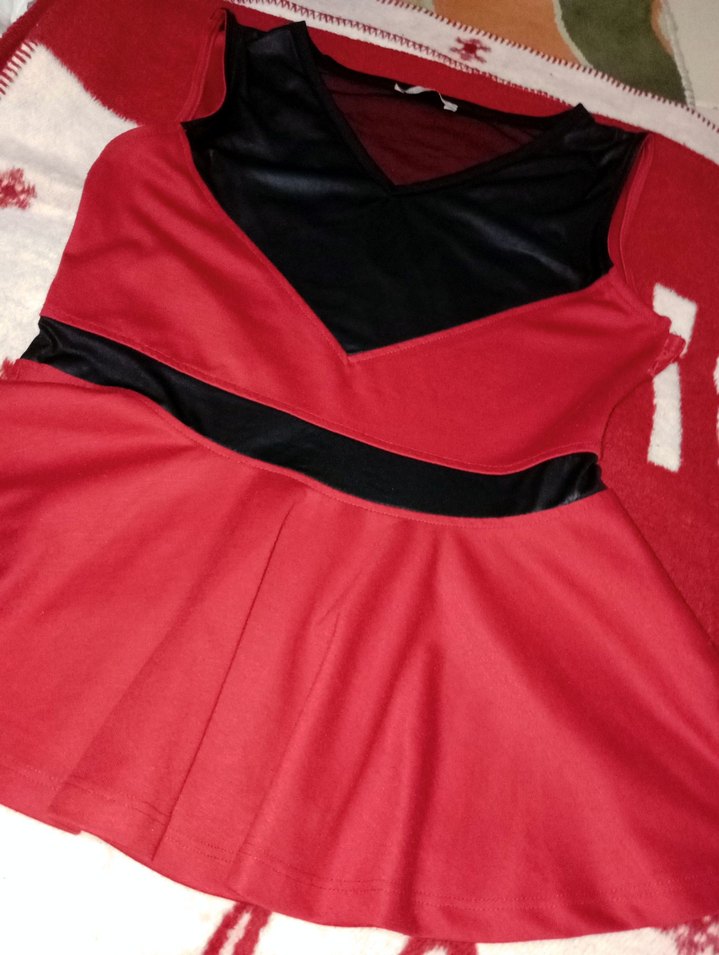 Kırmızı, V yakalı ve kolsuz hamile tunik. Kısa boyda, kemerli ve siyah detaylı, cesur athleisure tarzında günlük kullanım için uygun.