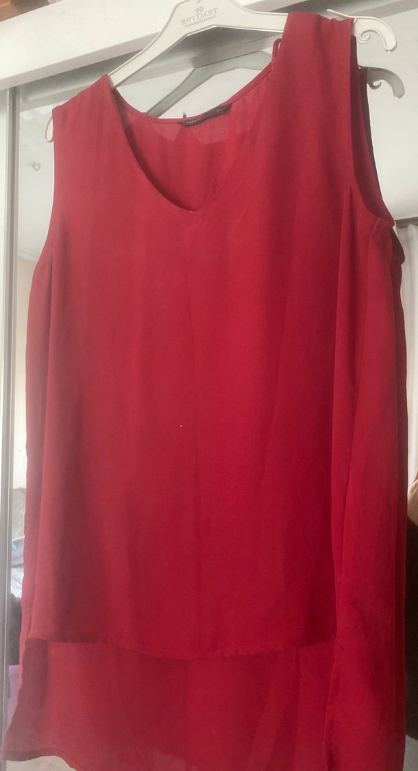 Kırmızı V Yakalı Kolsuz Kadın Bluz 40 beden 2 kere giyikdi - Görsel 3