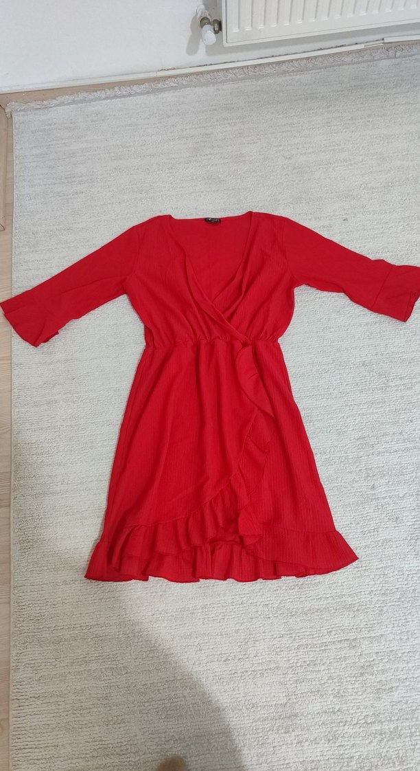 Kırmızı V Yakalı Midi Elbise