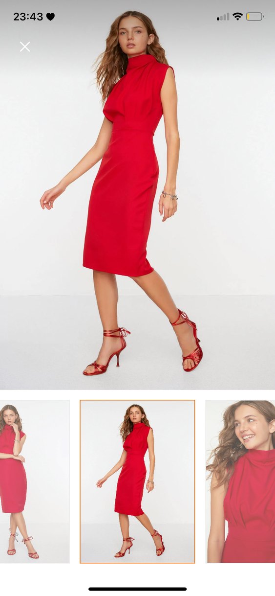 Kırmızı parlak ipek görünümlü kumaştan, V yakalı ve ince askılı, mini kalem elbise. Romantik akşamlar için zahmetsiz şıklık sunar. ❤️