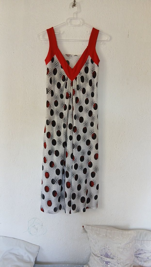 Kırmızı V Yakalı Puantiyeli Hamile elbisesi