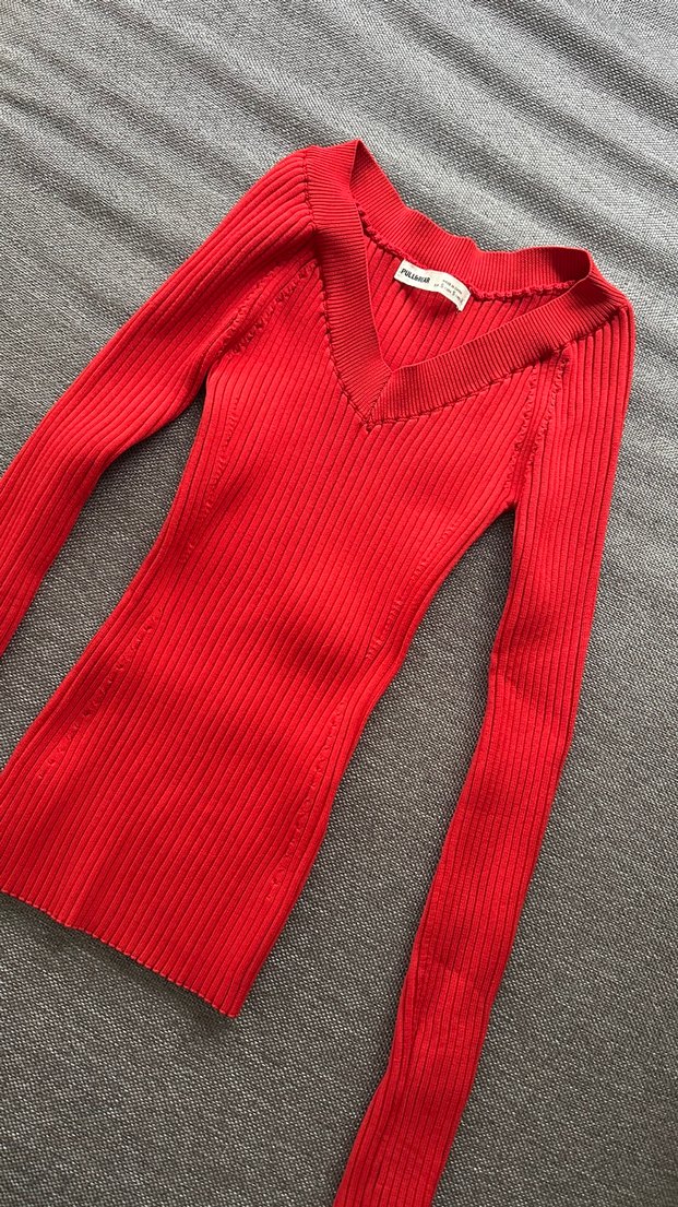 Kırmızı V Yakalı Pull and Bear Kazak