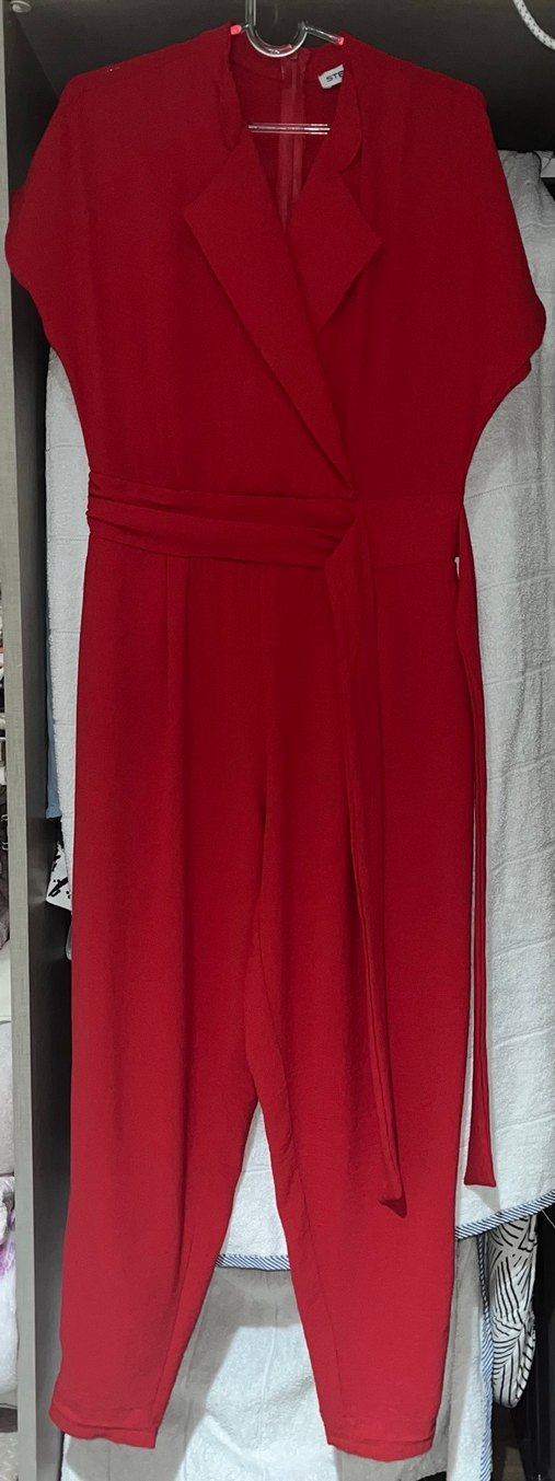Kırmızı uzun tulum, V yakası nişan düğün gibi veya gibi yerlere çok uygun