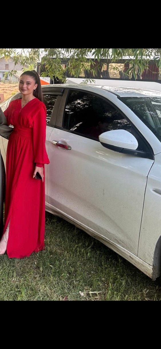 Kırmızı V Yakalı Uzun Kollu Kadın Abiye