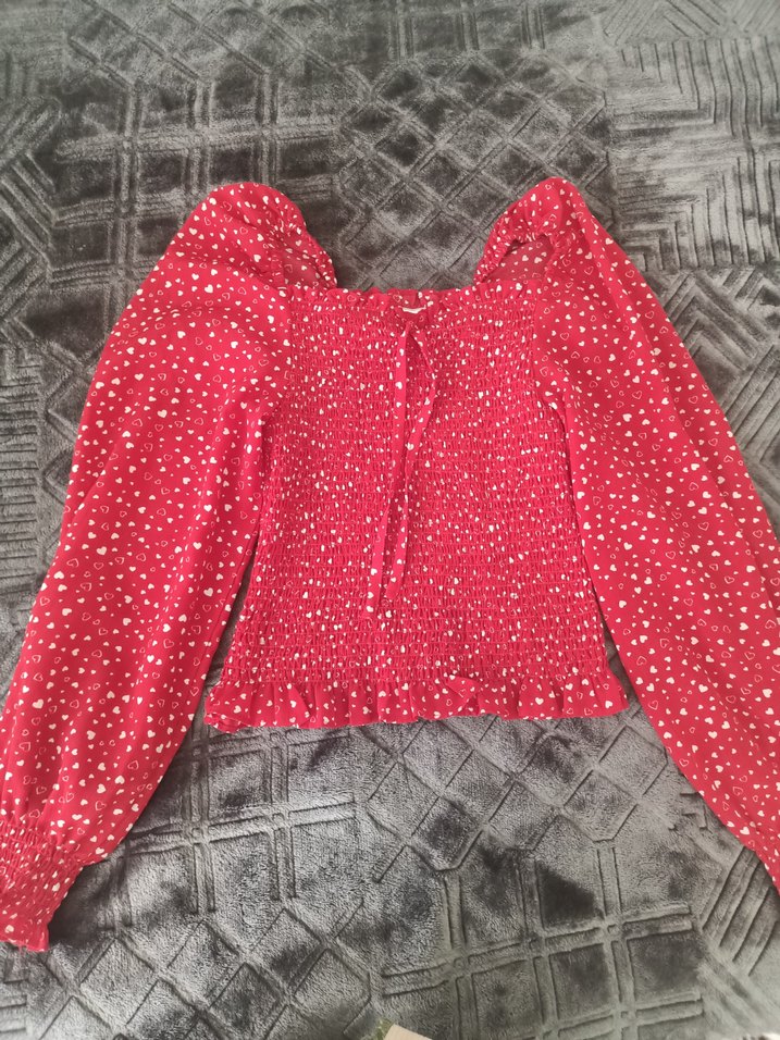 Düğmeli, uzun kollu ve V yakalı kırmızı kadın bluz, sentetik kumaştan üretilmiştir. Bohem tarzı için uygun, şık bir görünüm sunar.