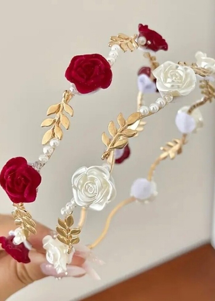 Kırmızı ve beyaz özel günler için yapay gül detay taç
