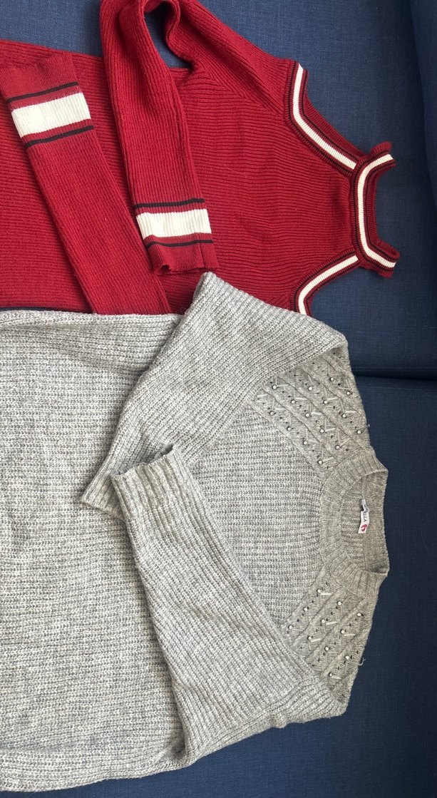 Kırmızının omuz kısımları aciktir. Gri taş detaylıdır. Grinin kalıbı kırmızıya göre daha boldur ve rahattır. Standart bedenler