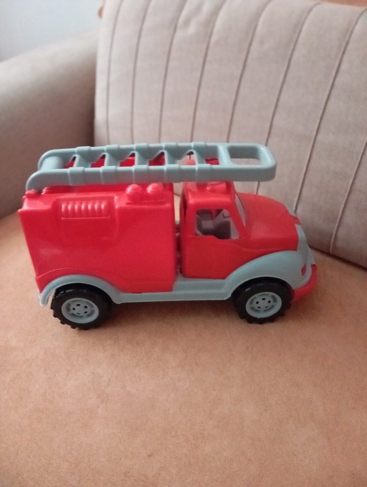 Kırmızı gövde ve gri merdiven detaylı oyuncak itfaiye arabasıdır. Dayanıklı yapıya sahiptir.