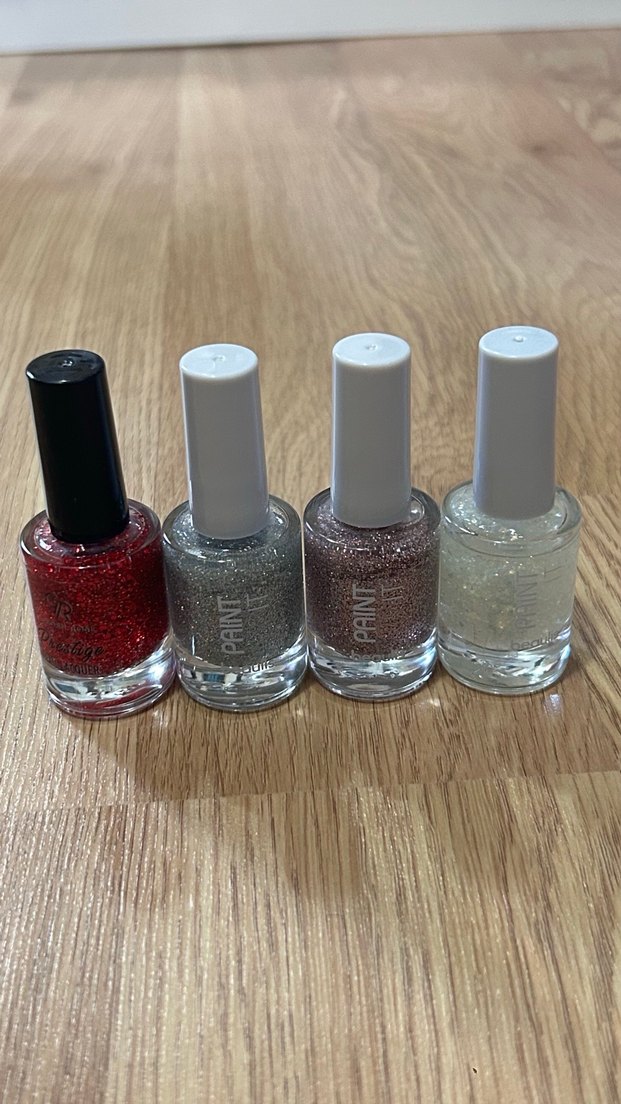 Kırmızı ve gri simli tonlardan oluşan, tırnaklara ışıltı katacak dört ojeden oluşan set. Sıfır Takma tırnak ihtiyacınız varsa hediye gönderebilirim